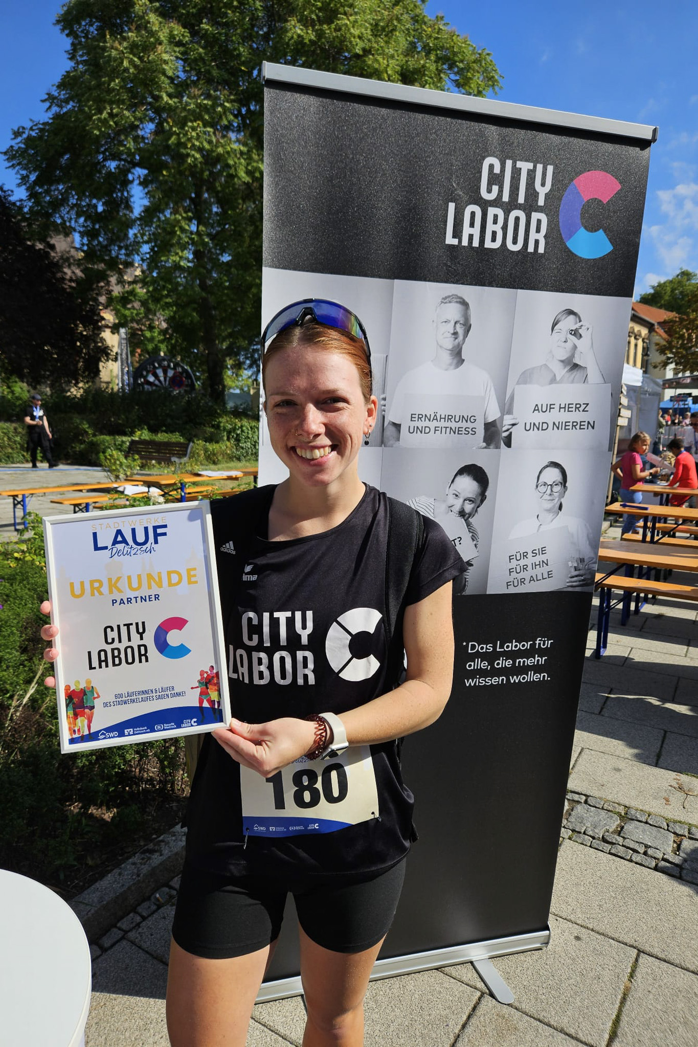 Auch wir vom City Labor waren mit unserem Infostand vor Ort, klärten über unsere Labordiagnostik auf, ließen das Glücksrad heiß laufen und feuerten die Läufer und Läuferinnen kräftig an. Auch 5 unserer Mitarbeiter gingen an Start. Denn der Sport verbindet auch unter Kollegen.